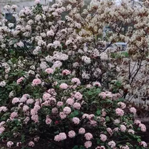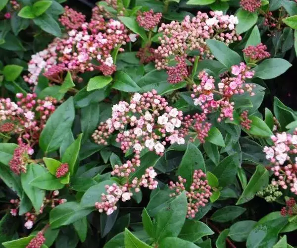 地中海荚蒾为忍冬科常绿灌木,多分枝,聚伞花序,花蕾粉红色,于秋季显蕾,直至第2年春季才开花,花白色,冬、春季都有其特殊的观赏特色。枝叶繁茂,耐修剪,其整形可参照夹竹桃,养护修剪以疏剪为主,宜在春末花后进行。