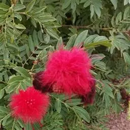朱缨花,豆科朱缨花属的多年生木本植物,枝条扩展,小枝褐色;叶片呈卵状披针形;头状花序腋生,…