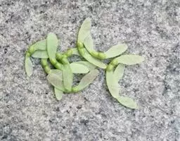 小坚果黄褐色,凸起,近于卵圆形或球形,长8-10毫米,宽6-8毫米,密被黄色绒毛;翅宽1.4厘米,连同小坚果长3.2-3.8厘米,张开近于锐角或直角。花期4月,果期9月。