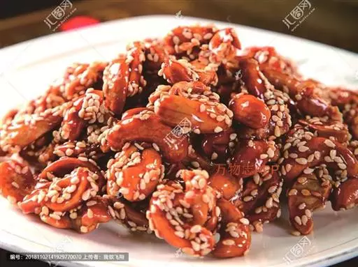 3.锅里加一勺料酒、一勺盐、一勺糖和一小把白芝麻,炒匀后出锅
