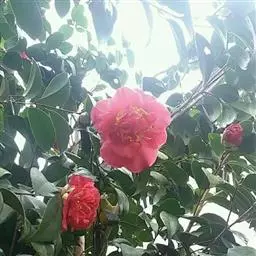 山茶树树采山坳,恍如赤霞彩云飘。