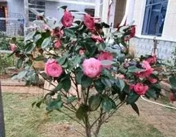 ③人工整形:山茶花还可以通过人工整形,供观赏应用,如:将山茶通过修剪整形,把树冠整成球形、伞形、圆柱形树冠,山茶墙树式,平卧铺地式,使山茶匍匐于地生长,铺地而生 。墙树在西欧北美应用较多,即将山茶花植于向阳温暖的墙面之外,附以攀登墙架,使山茶枝干顺墙面而升,继而覆盖墙面,颇为壮观。