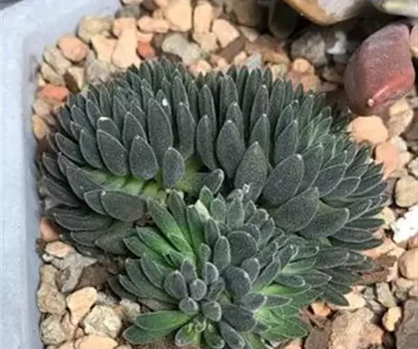 莲座丛直径2.5-3.5厘米,疏松。基生叶倒披针形至匙形,长1.2-2.5厘米,宽4-5毫米,先端急尖或渐尖,密被短的白柔毛;花茎高5-10厘米,被毛,密生叶;叶倒披针形,被毛。