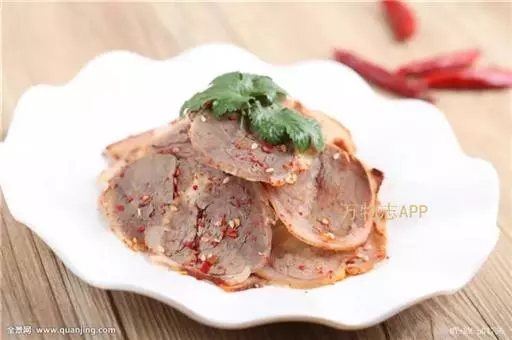 2.将牛肉片盛入碗内,先下盐拌合,使之入味,接着放辣椒油、白糖、酱油、味精、花椒粉再拌,最后下人葱及炒花生米细粒(或炒熟的芝麻),拌匀盛入盘内即成。