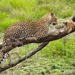 花豹是大型肉食性动物,体形似虎,但明显较小;头小尾长,四肢短健;毛被黄色,满布黑色环斑;头部的斑点…