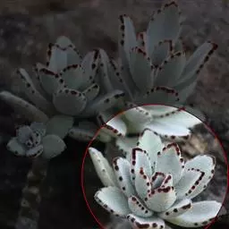 褐斑伽蓝是景天科、伽蓝菜属多年生肉质草本植物或小灌木。全株灰白色,密布白色茸毛。叶片长卵形,…