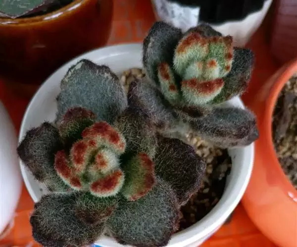 黑兔耳是景天科伽蓝菜属的 多肉植物,别名巧克力兔耳,是月兔耳的栽培品种。卵形叶被绒毛,形如兔子的耳朵,叶缘有深褐色斑点,叶色偏灰,易分枝。晚秋至早春生长旺盛。喜阳光充足的环境,夏季要适当遮荫,不能过于荫蔽。