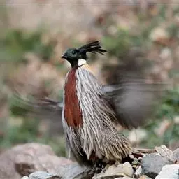 白颈长尾雉:大型鸡类,体长81厘米,体型大小和雉鸡相似。雄鸟头灰褐色,颈白色,脸鲜红色,其上后缘有…
