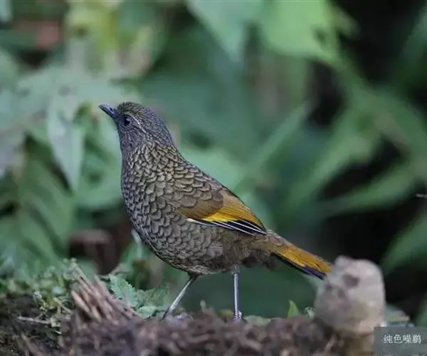 纯色噪鹛(学名:Trochalopteron subunicolor)是鹟科、噪鹛属中型鸟类,体长22-24厘米。上下体羽大都呈橄榄褐色或棕褐色,各羽均具黑色羽缘,在上下体形成密集的鳞状斑。外侧飞羽外硼基部草黄色,在翅上形成明显的块斑;外侧尾羽大都黑褐色具白色端斑。虹膜褐色或淡黄褐色,嘴黑褐色,脚暗褐或角褐色。