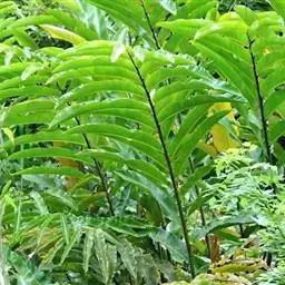 长叶肾蕨是一种典型的热带观赏蕨类,幼叶拳卷,有白色柔毛,颇具观赏价值,叶片丰满,终年鲜绿色,是居室绿化的优良植物,也是鲜切花市场上主要的切叶产品。长叶肾蕨的根状茎生长迅速,吊篮悬挂种植时能长至1m以上,别有一番观赏情趣。