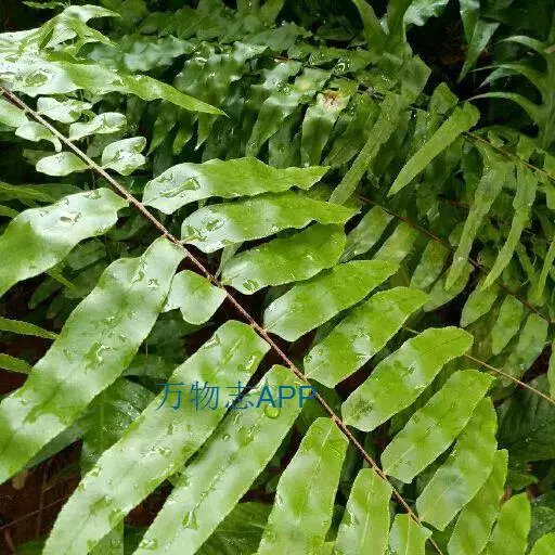 长叶肾蕨(学名:Nephrolepis biserrata (Sw.) Schott)是肾蕨科,肾蕨属伏生植物。根状茎短而直立,披针形鳞片,红棕色,边缘有睫毛;根状茎生有匍匐茎,叶簇生,柄坚实,上面有纵沟,叶片狭椭圆形,一回羽状,羽片互生,偶有近对生,叶薄纸质或纸质,干后褐绿色,两面均无毛,孢子囊群圆形,囊群盖圆肾形,褐棕色,边缘红棕色,无毛。