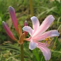 鹿葱(学名:Lycoris squamigera Maxim.)草本,1959年由Maxim命名;地生。鳞茎卵形。秋季出叶,叶带状,顶端钝圆。伞形花序,有花4-8朵,淡紫红色。花被裂片倒披针形,边缘基部微皱缩。雄蕊与花被裂片近等长。花柱略伸出花被外。