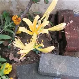 中国石蒜草本,地生。植株无毛,叶带状,顶端圆;伞形花序,花黄色;花被裂片背面具淡黄色中肋,倒披针形…
