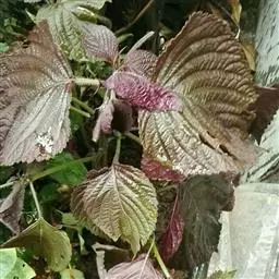 野生紫苏(Rerilla frutescens L,),别名桂荏、赤苏、白苏、香苏,为唇形科紫苏属一年生草本植物.原产中国和泰国,主要分布在东南亚各国,在日本普遍栽培,我国华北、华中、华南、西南及台湾省都有野生和栽培种.紫苏叶具特异芳香,有杀菌防腐和解蟹毒的作用。