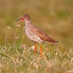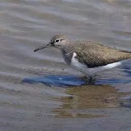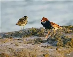 红脚鹬:体长28厘米,上体褐灰,下体白色,胸具褐色纵纹。飞行时腰部白色明显,次级飞羽具明显白色外缘。…