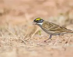 黄眉鹀是雀形目鹀科鹀属鸟类,体型中等偏小。雄鸟头部主要为黑色,冠纹白色,眉纹前段黄色而后段白色,…