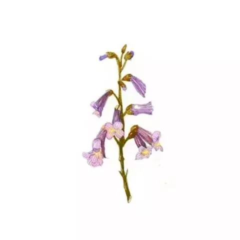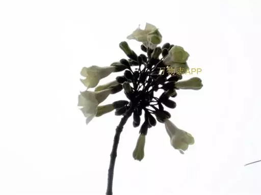 花序枝几无或仅有短侧枝,故花序狭长几成圆柱形,长约25厘米,小聚伞花序有花3-8朵,总花梗几与花梗等长,或下部者长于花梗,上部者略短于花梗;萼倒圆锥形,长2-2.5厘米,花后逐渐脱毛,分裂至1/4或1/3处,萼齿卵圆形至三角状卵圆形,至果期变为狭三角形;花冠管状漏斗形,白色仅背面稍带紫色或浅紫色,长8-12厘米,管部在基部以上不突然膨大,而逐渐向上扩大,稍稍向前曲,外面有星状毛,腹部无明显纵褶,内部密布紫色细斑块;雄蕊长3-3.5厘米,有疏腺;子房有腺,有时具星毛,花柱长约5.5厘米。