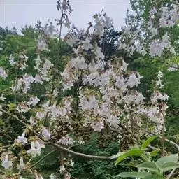 白花泡桐(学名:Paulownia fortunei (Seem.) Hemsl.)是玄参科泡桐属植物,乔木高达30米,树冠圆锥形,主干直,胸径可达2米,树皮灰褐色;叶片长卵状心脏形,有时为卵状心脏形。花序枝几无或仅有短侧枝,故花序狭长几成圆柱形;雄蕊长3-3.5厘米,有疏腺;蒴果长圆形或长圆状椭圆形。种子连翅长6-10毫米。花期3-4月,果期7-8月。