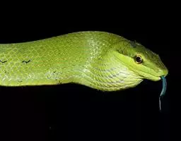 绿瘦蛇是游蛇科,瘦蛇属轻毒性后沟牙毒蛇。体型极细而长,长可达1.5米。头较窄长,…