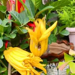 香橼为小乔木或灌木状;株高达5米;幼枝、芽及花蕾均暗紫红色;茎枝多刺,长达4厘米;单叶,…