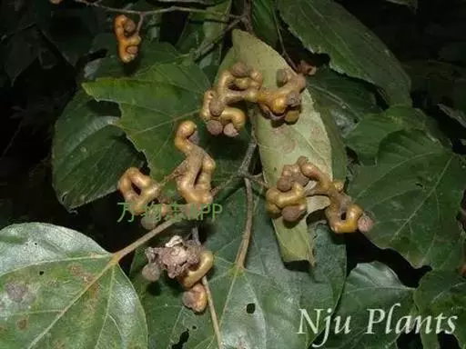 嫩枝、幼叶背面、叶柄和花序轴初有短柔毛,后脱落。叶片椭圆状卵形、宽卵形或心状卵形。果柄含多量葡萄糖和苹果酸钾,经霜后甜,可生食或酿酒,俗称“拐角”;木材硬度适中,纹理美,供建筑及制家具和美术工艺品等的用材。分布河南、陕西、甘肃陇南、江西、安徽、浙江、广东、福建、湖北、湖南、广西、四川、贵州、云南等省。果实形态似万字符,故称其树为万寿果树。果实熟透可生吃,果肉多浆,无果核,种子裸露在果肉之外,味浆甜略有甘涩,亦可做汤,汤味独特醇香。