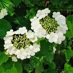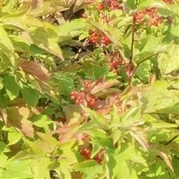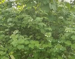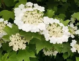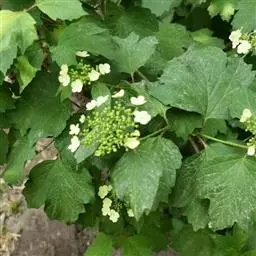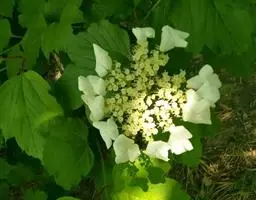 鸡树条(学名:Viburnum opulus Linn. var.calvescens (Rehd.) Hara f. calvescens)是忍冬科,荚蒾属欧洲荚蒾的原变型,落叶灌木植物。高可达4米;冬芽卵圆形,有柄,无毛,叶片轮廓圆卵形至广卵形或倒卵形,通常3裂,掌状,无毛,裂片顶端渐尖,边缘具不整齐粗牙齿,椭圆形至矩圆状披针形而不分裂,边缘疏生波状牙齿,叶柄粗壮,无毛,复伞形式聚伞花序,周围有大型的不孕花,总花梗粗壮,无毛,花生于第二至第三级辐射枝上,花梗极短;萼齿三角形,均无毛;花冠白色,辐状,花药黄白色,不孕花白色,果实红色,近圆形,5-6月开花,果熟期9-10月。