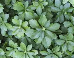 板凳果常绿亚灌木,铺地生长。株高20cm,冠径25cm。每个茎顶端生3~6片叶,叶卵形,边缘有锯齿,…