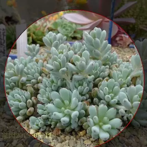 蓝豆是景天科、风车草属的多年生植物,多肉植物。植株叶片覆白粉,呈淡蓝色,…