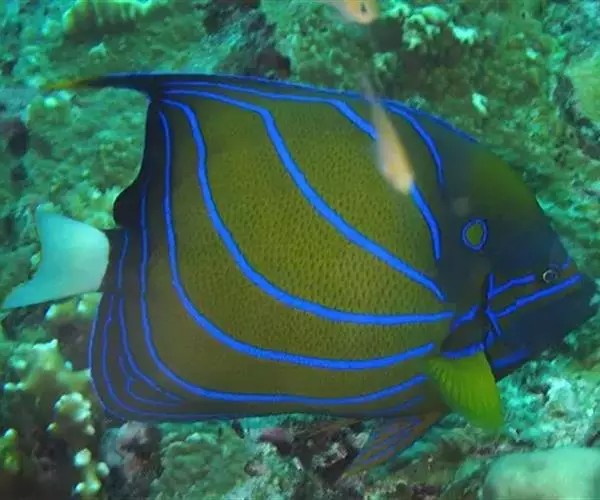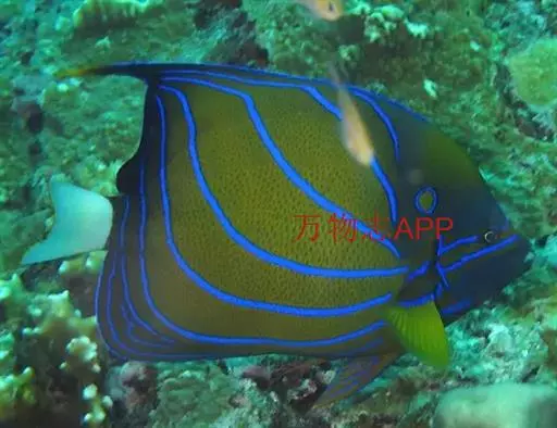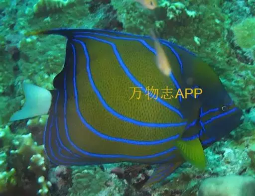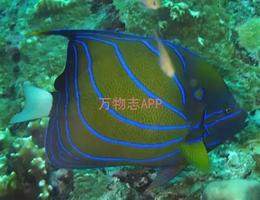 环纹刺盖鱼或称肩环刺盖鱼,别称蓝环神仙或白尾蓝纹神仙,成鱼尾鳍白色,肩部有一个蓝色圆环,体侧则有数条蓝色弧线,非常美丽,是著名的海水观赏鱼类。主要分布于印度太平洋海区,多见于印度尼西亚,活动于大型珊瑚礁区,觅食无脊椎动物及各类附着于礁石的有机物如海绵、珊瑚虫等。