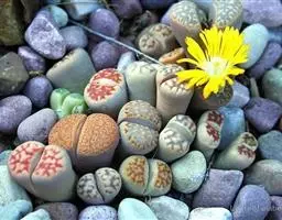 生石花,番杏科生石花属多年生肉质草本植物。植株几乎无茎;花朵较大,颜色艳丽,呈多边形,…