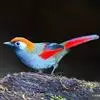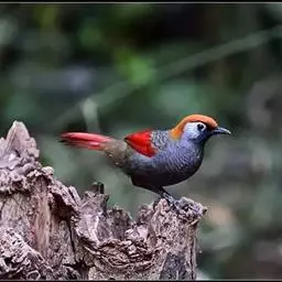 赤尾噪鹛中型鸟类,体长24~28厘米。头顶至后颈红棕色,两翅和尾鲜红色,眼先、眉纹、颊、颏和喉黑色,…