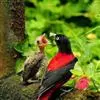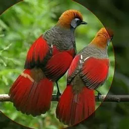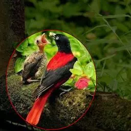 朱鹂:中等鸟类,体长23-28厘米。雄鸟绛紫红色,头、上胸及翼黑色。雌鸟上背及背部深灰色,…