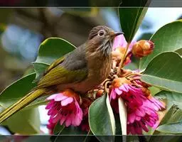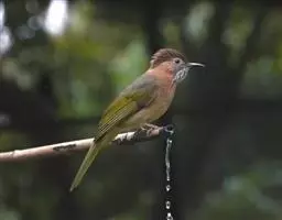 灰短脚鹎,体长19-22厘米。头顶和短的羽冠黑色,上体暗灰色,耳羽灰褐色,两翅表面橄榄绿黄色。…