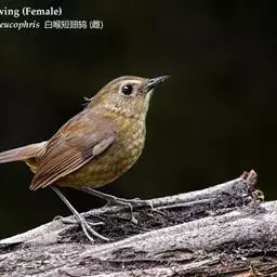 白喉短翅鸫是鹟科、短翅鸫属小型鸟类,体长12-13厘米。上体锈褐或橄榄褐色,眼上方有1-2枚白羽,…