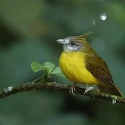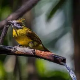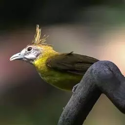 黄腹冠鹎:体长19-24厘米,是一种体型略大的褐色鹎。头顶橄榄褐色具黑褐色羽冠。白色的喉膨起,…