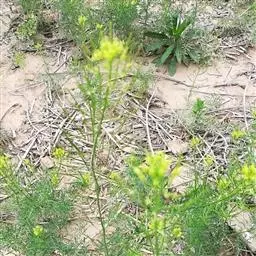 一年生或二年生草本,高5~30厘米:茎直立或斜升,多分枝,被微小头状毛。基生叶莲座状,平铺地面,羽状浅裂或深裂,叶片狭匙形;茎生叶狭披针形至条形,有疏齿或全缘:总状花序顶生;花小,不明显;花梗丝状,被棒状毛;萼片舟状,呈椭圆形,无毛或被柔毛,具膜质边缘;花瓣极小,匙形,白色。短角果近圆形,种子椭圆形,棕红色,平滑。主产河北、辽宁、内蒙古等地。