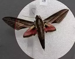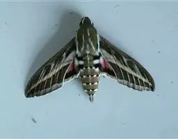 夹竹桃天蛾是鳞翅目天蛾科昆虫。又称夹竹桃白腰天蛾、巴纹天蛾。成虫呈青黑色,四翅正反面都以橄榄色为主调,…