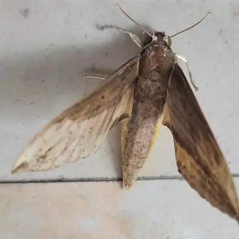 青背长喙天蛾属动物界节肢动物门昆虫纲鳞翅目天蛾科长喙天蛾属,前翅反面暗褐,基部污黄,各横线呈深色波…
