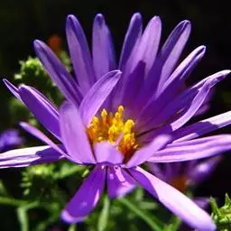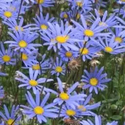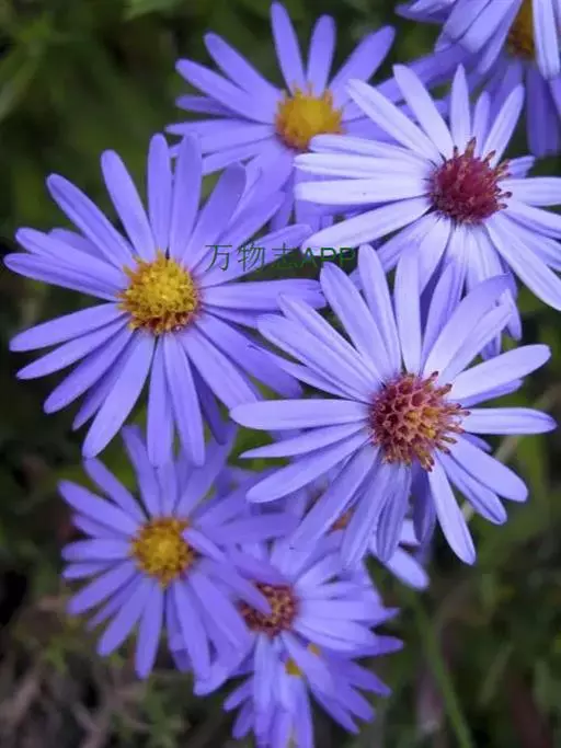 荷兰菊为多年生草本。株高50—100cm。叶片椭圆形,头状花序,单生,蓝色。荷兰菊为菊科多年生宿根草本花卉,有地下走茎,茎丛生、多分枝,叶呈线状披针形,光滑,幼嫩时微呈紫色,在枝顶形成伞状花序,花色蓝紫或玫红,花期10月。