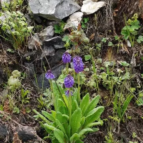 紫花雪山报春 多年生草本。根状茎短,具多数长根。