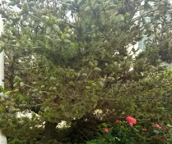 日本五针松为松科常绿乔木,原产日本,分布在本州中部、北海道、九州、四国海拔1500m的山地。我国的长江流域各城市、青岛、北京等地引种栽培。