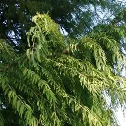 乔木,高达20米,胸径达1米;树皮红褐色,有浅裂纹;枝条平展或斜上直立,密生;小枝基部有宿存芽鳞,一年生枝绿色,秋后呈淡红褐色,二、三年生枝呈红褐色或黄褐色;冬芽淡黄褐色,芽鳞先端渐尖,背面有纵脊。