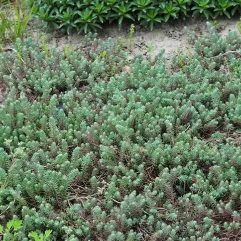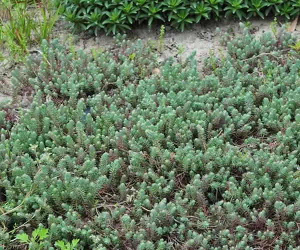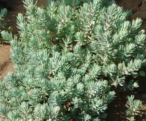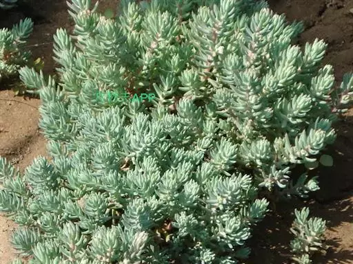 多年生草本植物株,叶带有白色蜡粉,灰绿色,叶在小枝上的排列似云杉。花亮黄色,花期 6至 7月,花枝较长且很坚硬。叶片尖端弯曲,全株灰绿色。花色黄,株高约15至25厘米。 反曲景天