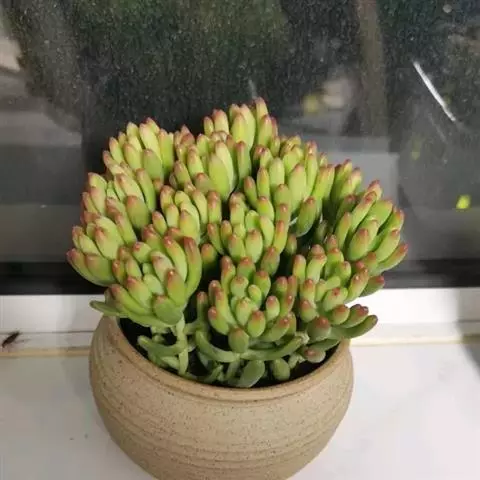 绿龟卵属于景天科景天属,原产墨西哥高原,喜欢亮光,冬春开花,喜欢适度的潮湿不过不能过湿。