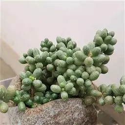 玉米石是景天科、景天属植物。多年生草本多浆植物。植株低矮丛生,多分枝。叶膨大成圆筒形、卵形或近小球形,…