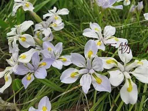 大扁竹兰扇形鸢尾,多年生草本,根茎横生,粗壮,黄白色,节明显;叶黄绿色,集生茎顶,叶片宽剑形,花蓝…