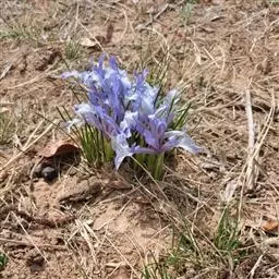 粗壮小鸢尾,拟罗斯鸢尾大花变种 该变种植株的各部分均较原变种粗大;植株高20-28厘米。花期叶长约27厘米,宽约7毫米,果期叶长可达55厘米,宽约8毫米。花茎高20-28厘米;花淡蓝紫色,直径约5厘米;花梗长约1-2厘米;花被管长3-6厘米,外花被裂片长约2.6厘米,宽约9毫米,内花被裂片长2-2.2厘米,宽约7毫米;雄蕊长约7毫米;花柱分枝长约1.6厘米。花期4月,果期5-7月。产浙江。生于开阔地、林下或路旁。模式标本采自浙江西天目山。