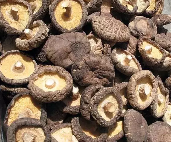 (Ⅲ)分级和贮藏:干菇极易吸湿回潮、发霉变质和生虫,影响质量。因此香菇烘干后,应立即按菇的大小、厚薄分级,而后迅速装箱或装入塑料袋密封,置干燥、阴凉处保藏。