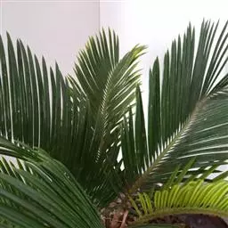 苏铁炭疽病:又名叶枯病,主要为害新抽幼嫩小羽叶片。羽叶受害症状因不同品种而异:或病斑中间深灰色,边缘呈深褐色;或病部变褐色,纵卷成一条线,干枯垂直;或病斑为长椭圆形,土黄褐色,后期黑褐色,病健交界明显(一般以叶脉为界);有的病斑中心红褐色,半圆形、椭圆形或不规则形,外有黄晕,病健交界不清,很难见到小黑点。严重时也可引起羽叶成段枯死。