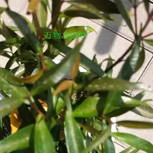 灌木或小乔木,高3-10米。枝灰褐色,圆柱形,粗糙,小枝褐色或灰色,近四棱形,无毛,密被细小鳞片。叶片革质,狭披针形至长圆状椭圆形,长3-10厘米,宽1-2厘米,先端渐尖,具长凸尖头,基部渐窄,叶缘稍反卷,两面无毛或在上面中脉被微柔毛,下面密被锈色鳞片,中脉在上面凹入,下面凸起,侧脉多对,不甚明显,两面微凸起,在近叶缘处汇合成一直线;叶柄长3-5毫米,被锈色鳞片,无毛。